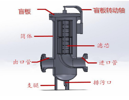The basket filter primarily consists of an inlet pipe and flange, a cylindrical body, a filter basket, a body flange, a flange cover, and fasteners. When liquid flows through the inlet into the cylindrical body and passes through the filter basket, solid impurities are trapped inside the basket, while the clean fluid flows through the basket and exits through the filter outlet. For cleaning, open the bottom drainage port to drain the fluid; then remove the body flange cover, clean the filter basket, and reassemble.